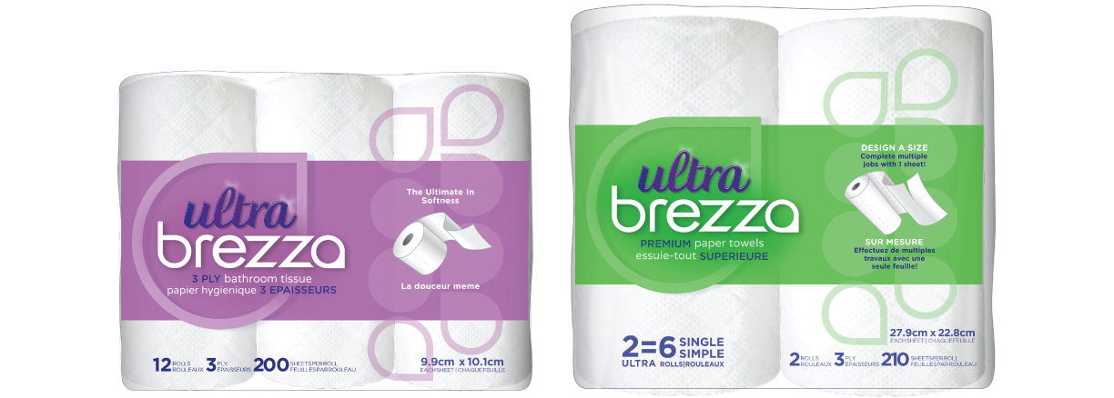 Packaging Designs for Shopper’s Drug Mart store brand bathroom paper.